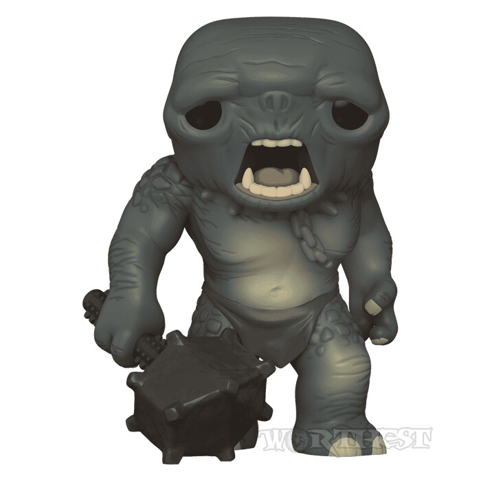 Пещерный тролль изображён в атакующей позе: пасть широко раскрыта, клыки обнажены, тяжёлое тело подано вперёд, а массивная дубина занесена для сокрушительного удара. Формат POP! Super здесь работает на атмосферу — увеличенный размер подчёркивает диспропорцию сил и делает фигуру визуально доминирующей. Даже в стилизованной эстетике Funko тролль не выглядит мультяшным: он давит массой, угрожающим силуэтом и ощущением неконтролируемой мощи.