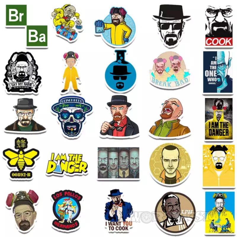 Сюжет сериала рассказывает об Уолтере Уайте — школьном учителе химии, которому диагностировали рак лёгких. Чтобы обеспечить финансовую стабильность своей семьи, он вместе с бывшим учеником Джесси Пинкманом начинает производить и продавать метамфетамин. На стикерах изображены ключевые персонажи и культовые моменты сериала, которые стали узнаваемыми во всём мире.