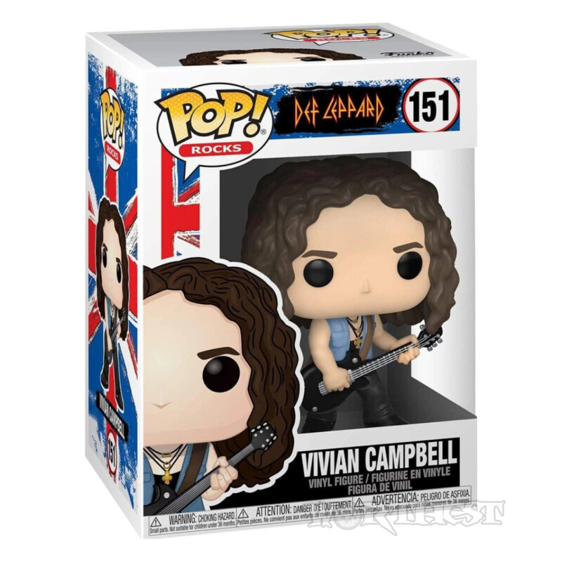 Енергія року у вініловому втіленні! Гітарист легендарного гурту Def Leppard — Вівіан Кемпбелл — представлений у стилі Funko POP! з чорною гітарою наперевіс, в образі, готовому до потужного гітарного соло. Він одягнений у шкіряні штани й жилет без рукавів, а фірмові довгі кучері та намиста підкреслюють сценічну харизму рок-зірки.