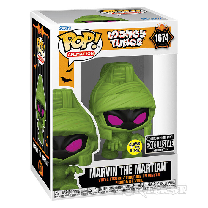 Інопланетний загарбник із Looney Tunes вирішив відсвяткувати Гелловін по-своєму! Фігурка Funko POP! зображує Марвіна Марсіанина в яскравому й кумедному образі мумії, що підкреслює його любов до маскування та несподіваних появ — цього разу у святковій світній версії.