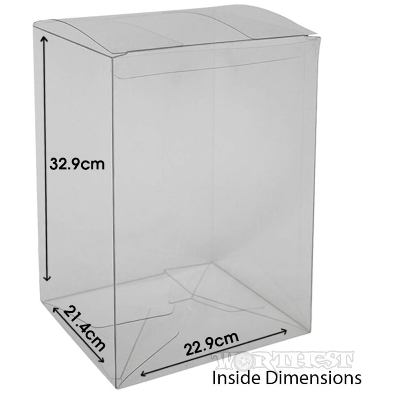 Завдяки внутрішнім розмірам 229 × 214 × 329 мм, протектор ідеально підходить для фігурок формату 10 inch (Jumbo Size). Конструкція оснащена автоматичним замком на дні для зручного складання та верхнім фіксуючим замком (Push-Lock Tab), який надійно утримує коробку всередині, запобігаючи її зміщенню.