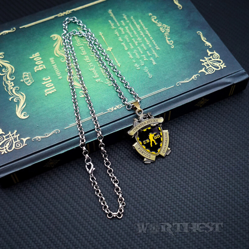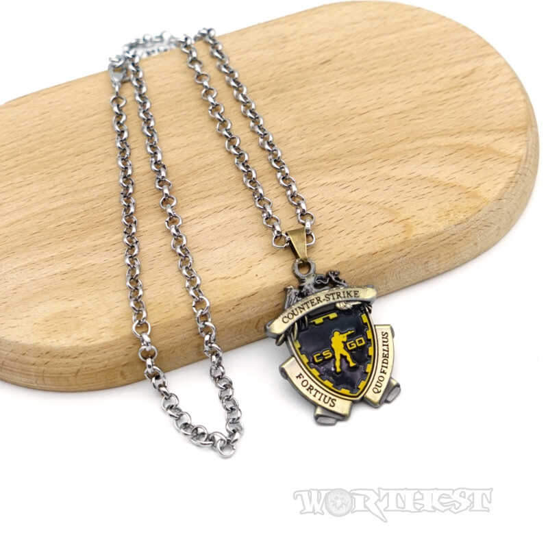 Цей медальйон у формі щита з логотипом CS:GO, латинським девізом та декоративними елементами — не просто прикраса, а справжній знак спадщини однієї з найвідоміших ігор в історії — Counter-Strike: Global Offensive. Його дизайн натхненний внутрішньоігровими нагородами, а значення лишається актуальним навіть у новій епосі Counter-Strike 2.