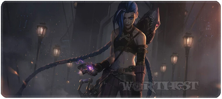 Фон працює як кінематографічна сцена: темна перспектива, ритм ліхтарів, вологе повітря й леткі частинки створюють відчуття нічного мосту та передгрозової тиші. У такому оточенні Джинкс виглядає не «героїнею постера», а фігурою перед вирішальним кроком — коли ще можна зупинитися, але вже неможливо повернутися назад. Саме тому цей момент так чіпляє фанатів: у ньому одночасно присутні і сила, і біль, і спогад про те, ким вона була до того, як стала Джинкс.
