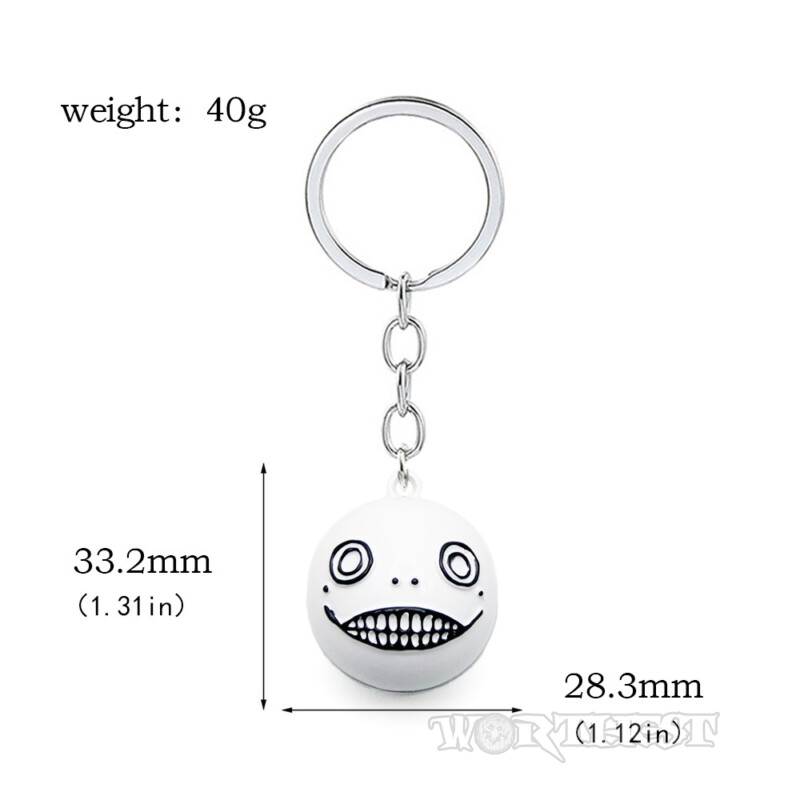 Атмосферний брелок за мотивами культової гри NieR:Automata у вигляді знаменитої «голови Еміля». Сферична підвіска з контрастним чорним промальовуванням очей і широкою «усмішкою» миттєво впізнавана фанатами серії. Глянцева емаль підкреслює деталі, а металева фурнітура робить аксесуар міцним для щоденного носіння на ключах, рюкзаку чи сумці.