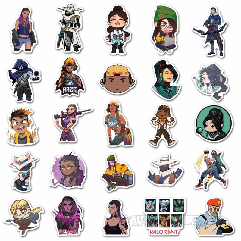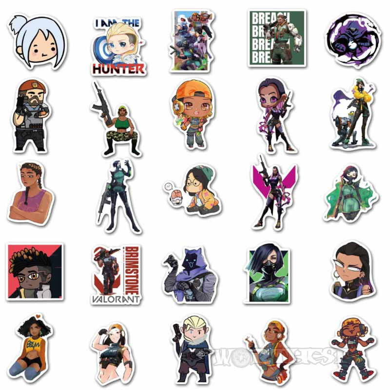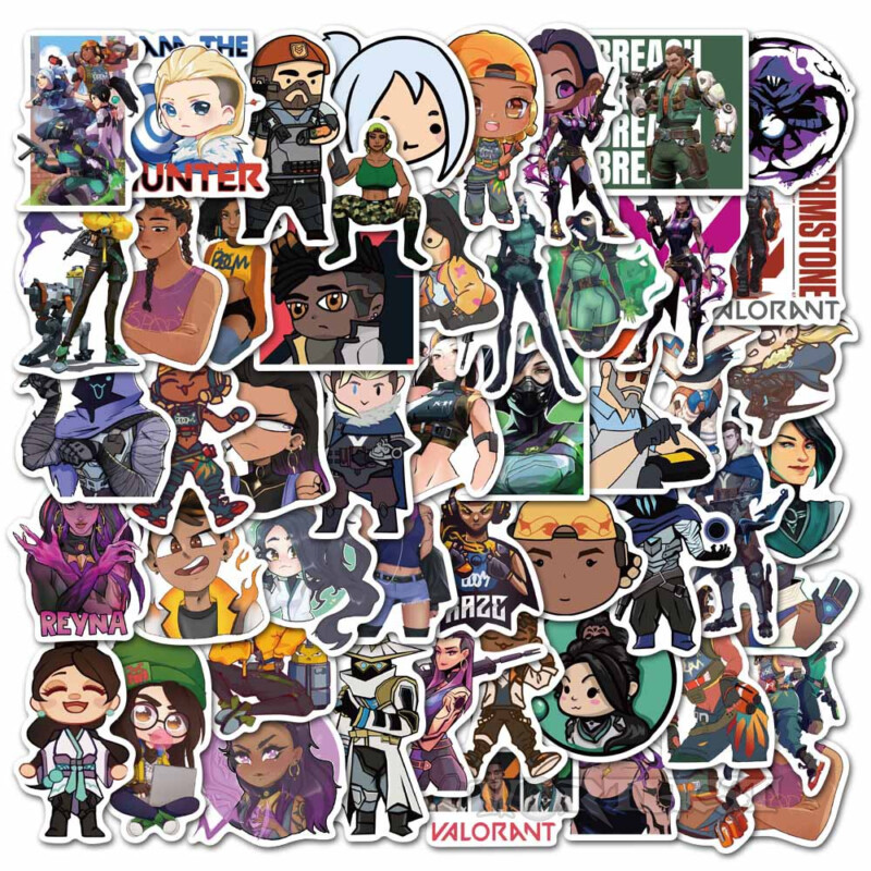Цей набір із 50 вінілових наліпок створено спеціально для шанувальників гри Valorant. Яскраві, насичені кольорами стікери зображують найпопулярніших агентів у різноманітних стилях — від мультяшного до напівреалістичного. Водостійкі, щільні й вирізані по контуру, вони чудово підходять для декору ноутбуків, пляшок, телефонів, ґеймпадів, валіз, столів, а також як подарунок геймеру.