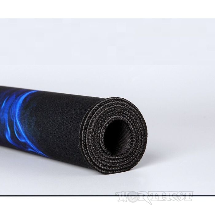 На поверхні зображено стилізований образ яскраво-синього хижака, виконаний у динамічному «вогняному» стилі. Цей малюнок символізує міць, швидкість і агресивний ігровий настрій, додаючи килимку виразності та унікальності. Такий дизайн особливо оцінять геймери, які люблять атмосферні й запам’ятовувані аксесуари.