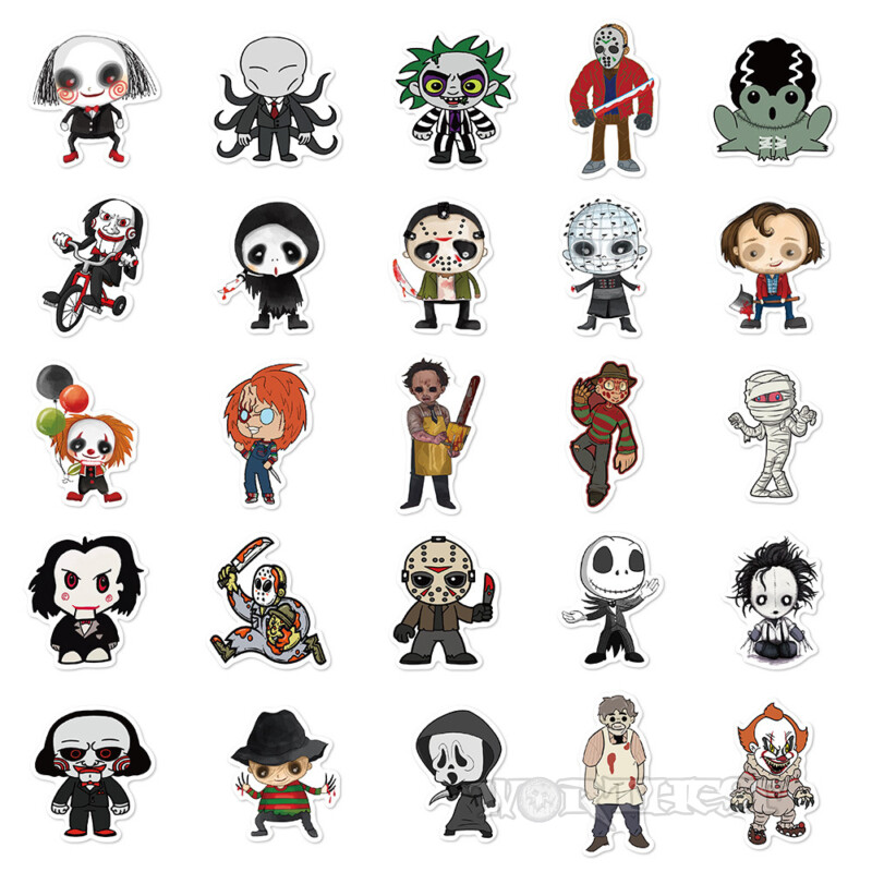 Наклейки Хорор персонажі 50шт/набір Horror стікери Чакі Фредді Джейсон