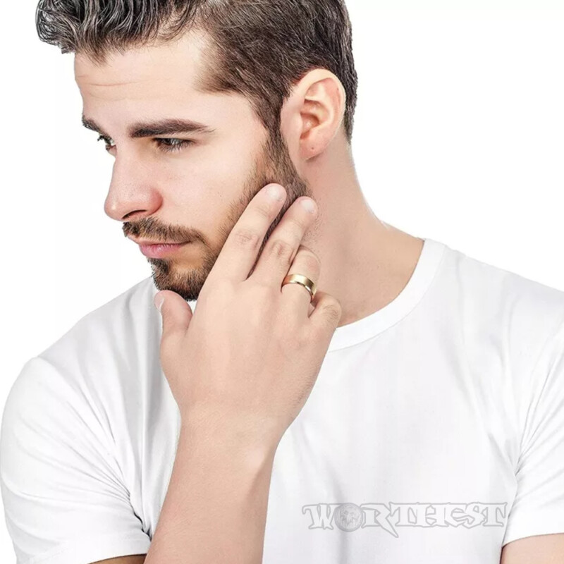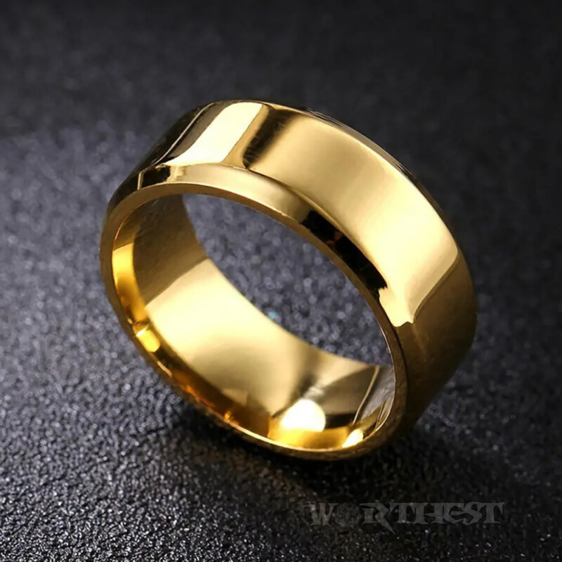 Кільце солідне золотисте з нержавіючої сталі 316L глянсове унісекс