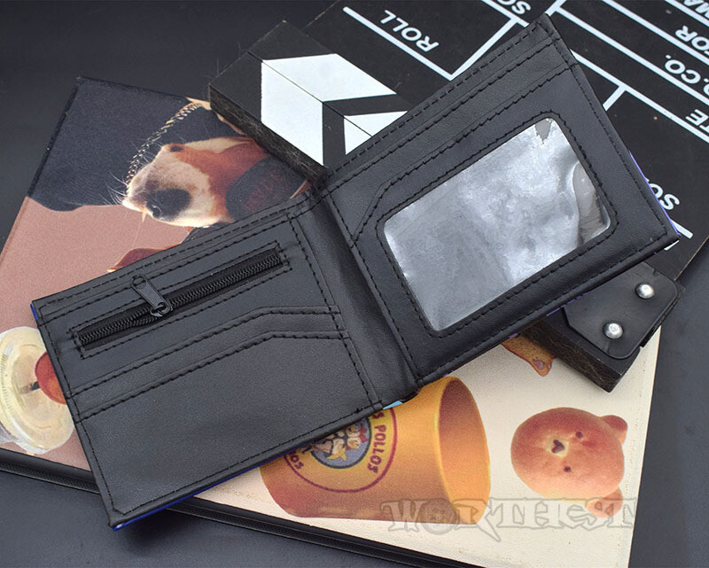 Поєднання глибокого синього й чорного кольору відображає характер персонажа та надає гаманцеві сучасного вигляду. Виготовлений з приємної на дотик екокожі (PU), він стійкий до зносу та легко очищується. Усередині — усе необхідне: прозоре віконце для ID-картки, відділення для банківських карт, місткий кишеню для купюр і відсік на блискавці для монет.