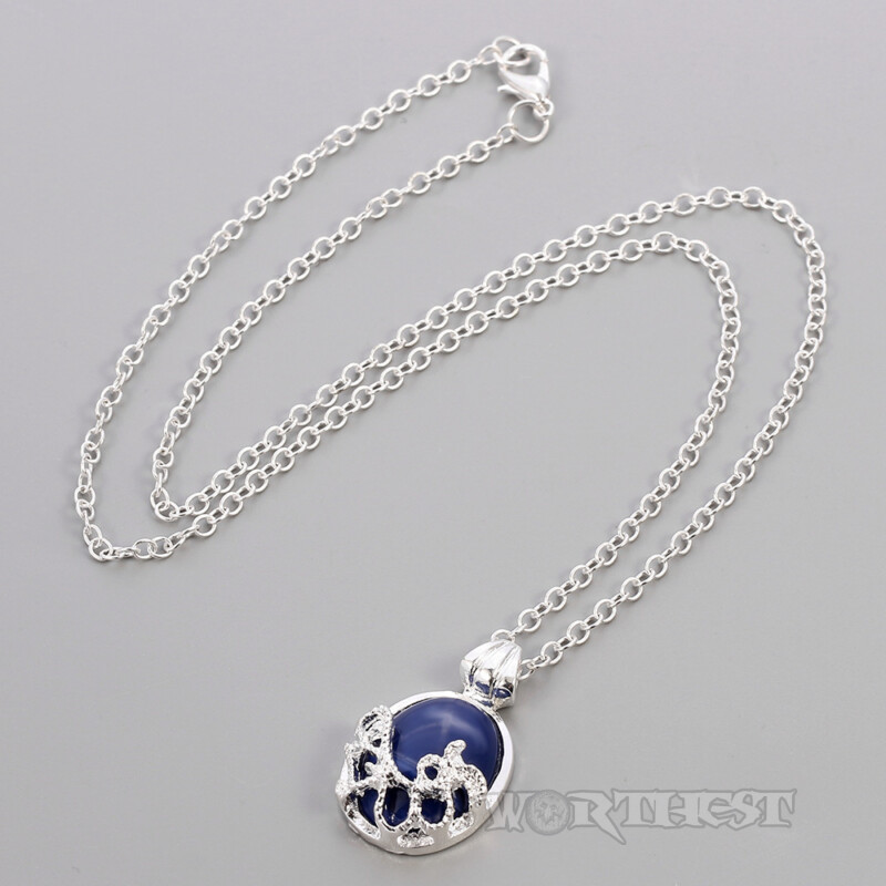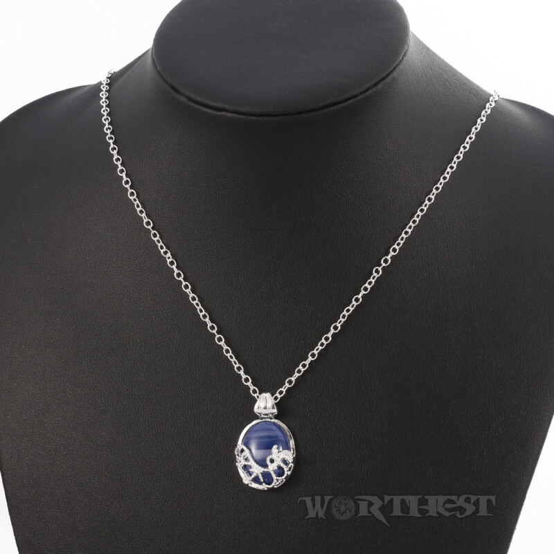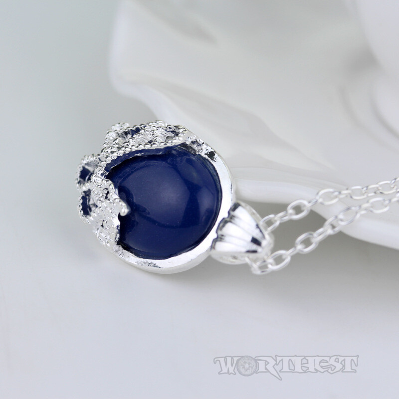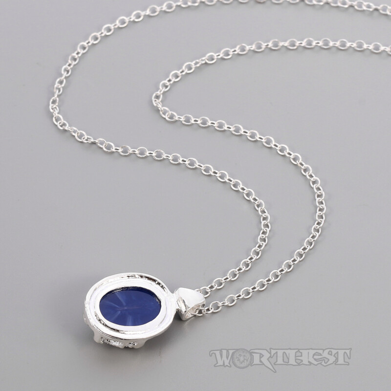 У центрі підвіски розташований глибокий темно-синій камінь, обрамлений вишуканим сріблястим візерунком, який нагадує вінтажне мереживо. Кулон уособлює холодну красу та внутрішню впевненість Кетрін Пірс, а насичений колір каменю додає образу витонченості й таємничості.