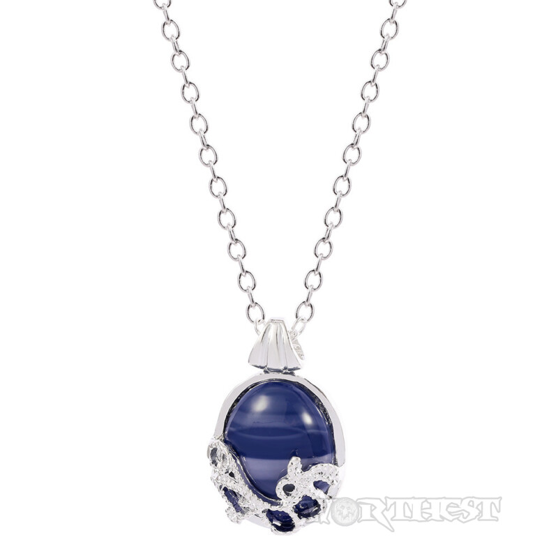Овальний кулон із темно-синім каменем у сріблястій оправі